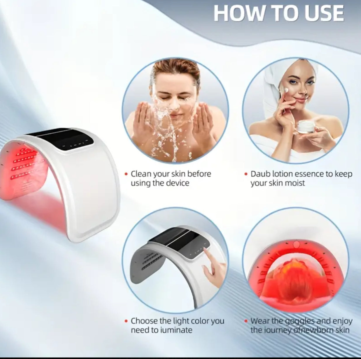 Transform your skincare routine with our Luxury 7-Color LED Facial Light Mask, a high-tech beauty device designed to rejuvenate, clarify, and revitalize your skin using advanced light therapy. Each color targets specific skin concerns: