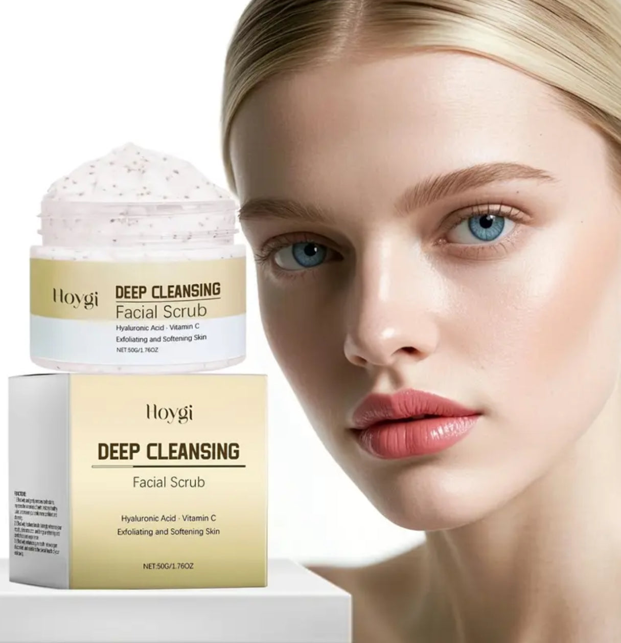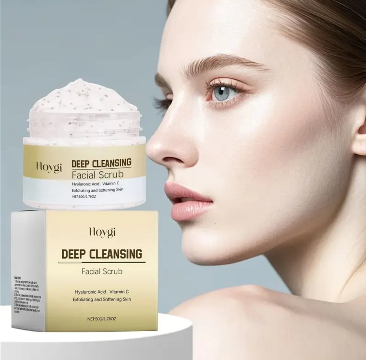 Hoygi Hydrating Facial Scrub 50g - Moisturizing & Smoothing with Hyaluronic Acid & Shea Butter, Evens Skin Tone, Suitable for All Skin Types, Deep Cleansing, Exfoliating & Softening