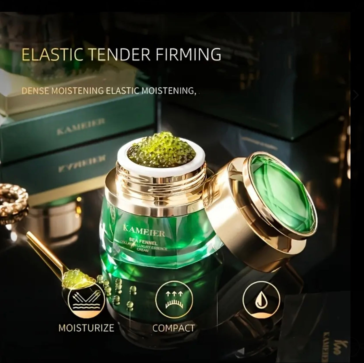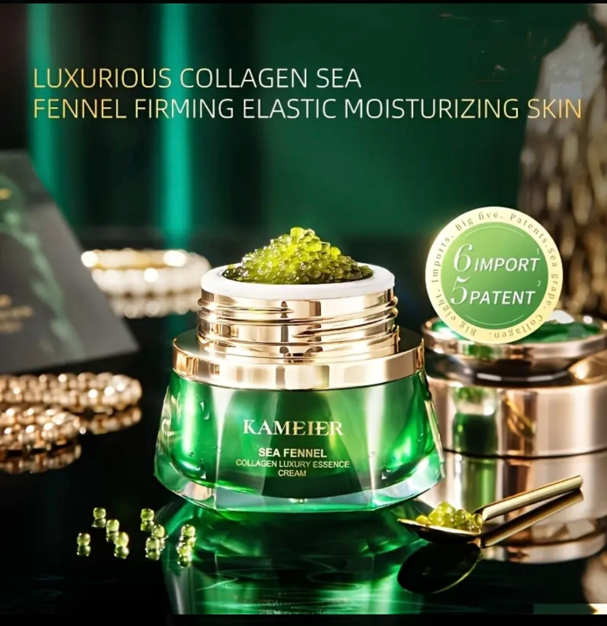 A hydrating, anti-aging moisturizer infused with sea fennel extract, hyaluronic acid, glycerin, and collagen. Marketed to nourish, firm, and promote a radiant complexion