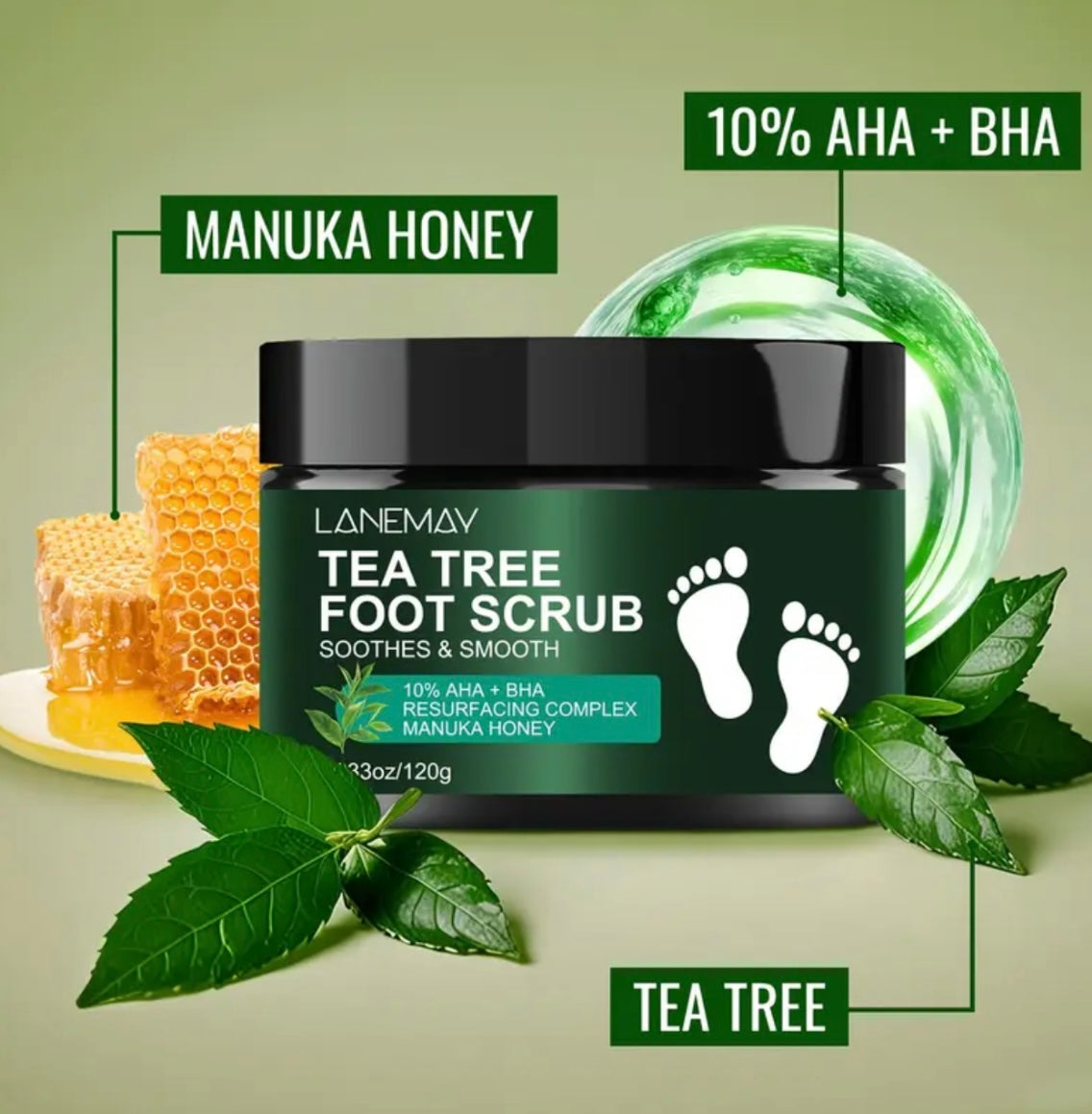 Refresh and revive tired feet with the purifying power of tea tree oil. This exfoliating scrub gently removes dead skin, fights odor-causing bacteria, and soothes dryness—leaving your feet smooth, clean, and cool. The perfect reset after a long day.